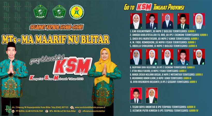 - MA Ma’arif NU Kota Blitar yang akan menuju tingkat provinsi jawa timur mewakili