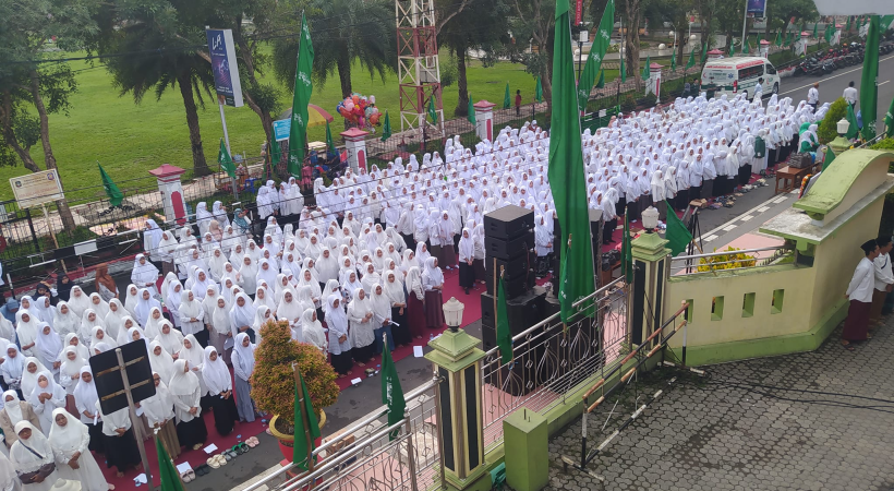 Santri selalu ready. Demikian memang kata yang tepat. Bagaimana tidak, setelah sholat Subuh para santri PP Nurul Ulum Kota Blitar ini dihimbau untuk segera sarapan, lalu siap-siap berbaris untuk berjalan kaki menuju masjid Agung Kota Blitar. Menempuh +-2 KM perjalanan dengan nuansa putih menjadi pemandangan yang adem. Hari ini Ahad, 16 Rajab 1445 merupakan tepat 101 tahun NU sejak berdiri 16 Rojab 1344. Para santri berkumpul di masjid Agung untuk istighosah bersama Walikota Blitar dan PCNU Kota Blitar.