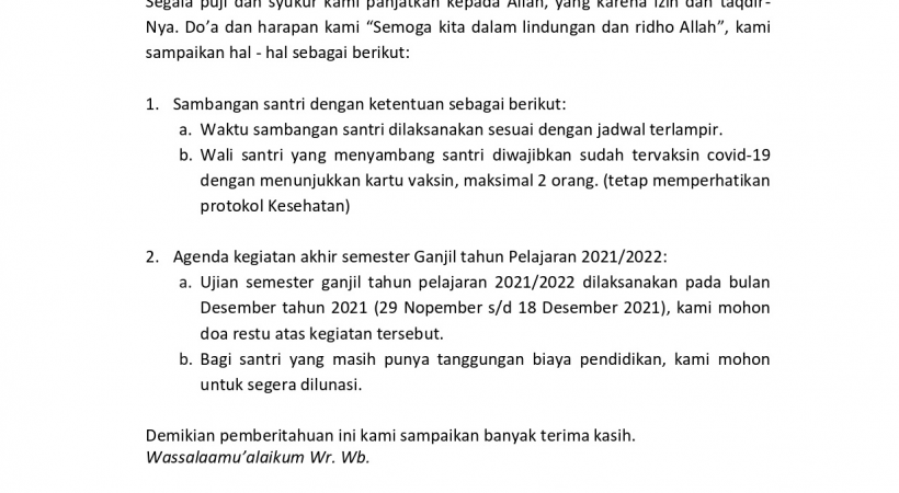 Yth. Bapak/ Ibu Wali Santri